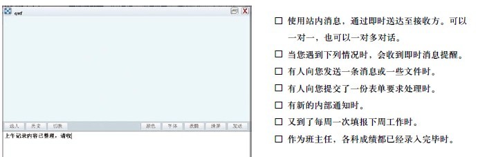 3)内部通知是典型的校内共享的应用。只有教师用户才能使用。当有新通知时,用户会收到即时消息提醒